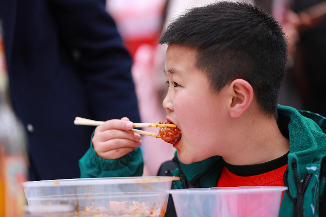Tourists savor the delights of Tianshui malatang in Tianshui, Gansu province, on March 16, 2024. [Photo provided to gogansu.com]