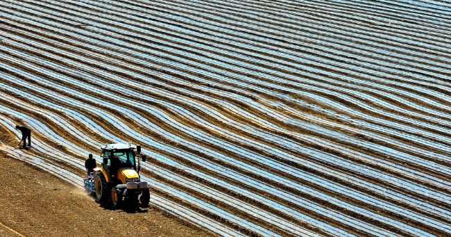 On April 7, 2024, farmers in Shandan county, Gansu province, use Beidou-guided tractors to sow selenium-rich spring wheat in high-selenium soil. [Photo provided to gogansu.com]