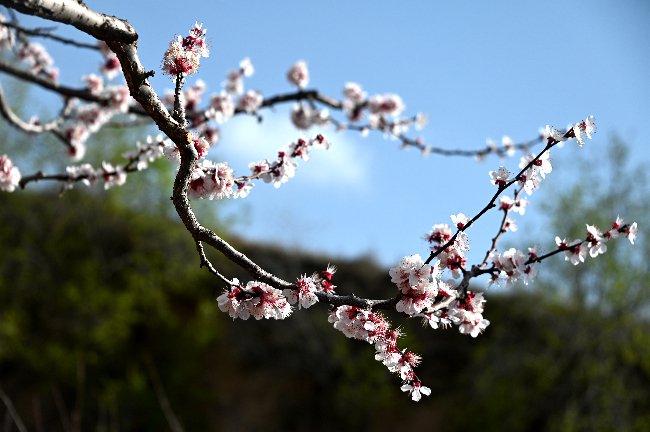 The picturesque apricot blossoms of Shuiyueping village, Shouyang town, Longxi county, Dingxi city, Gansu province. [Photo provided to gogansu.com]