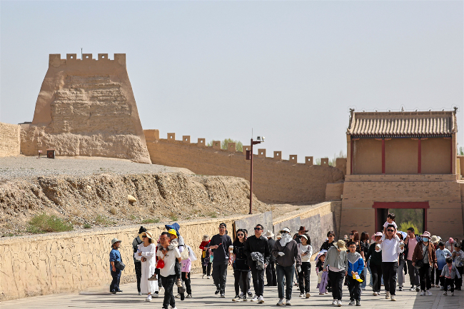 Tourists touring the Jiayuguan Pass scenic area. [Photo provided to gogansu.com]